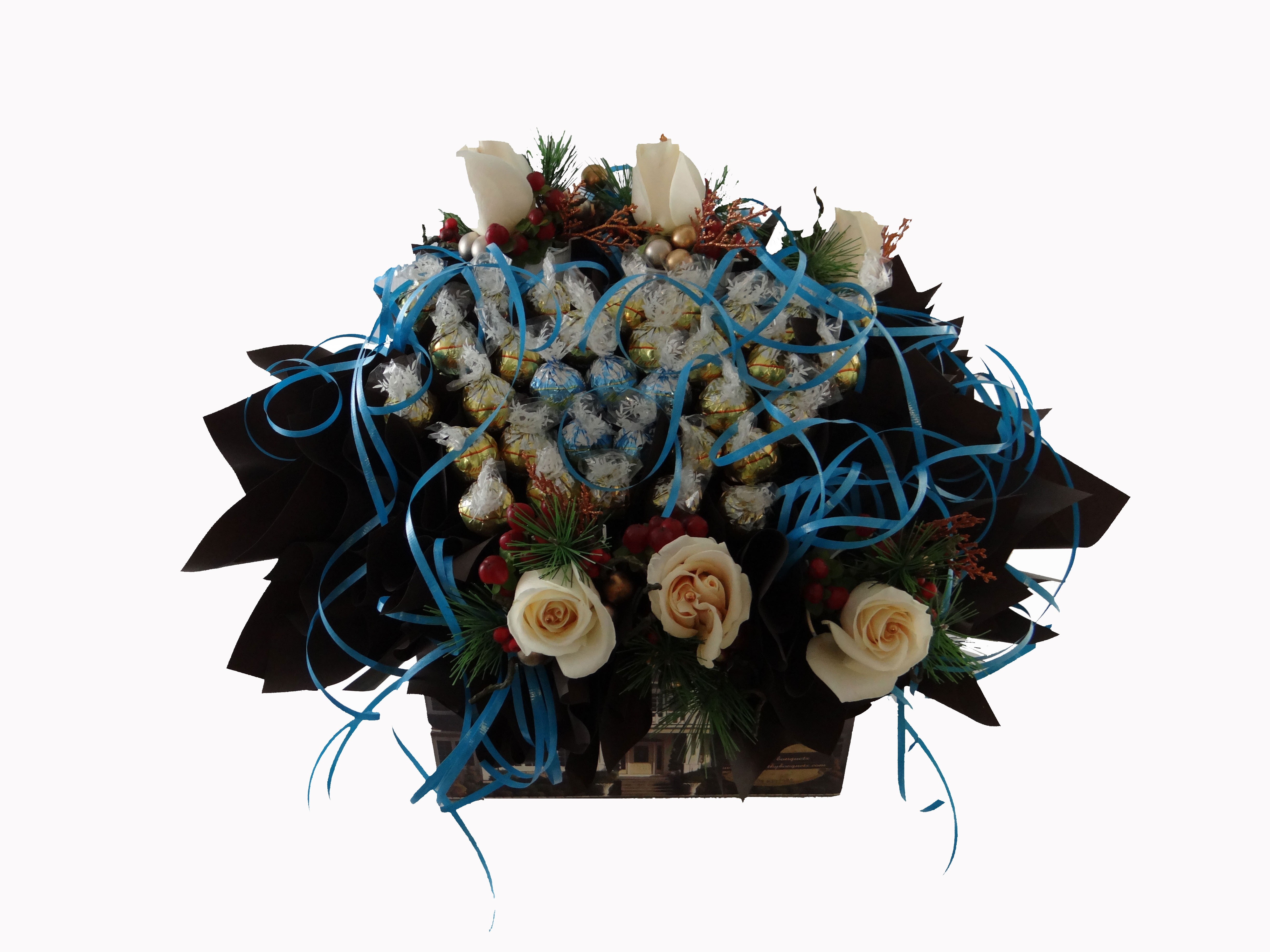 Roses surrounding the caramel chocolates adding a touch of beauty and luxury to your indulgences.