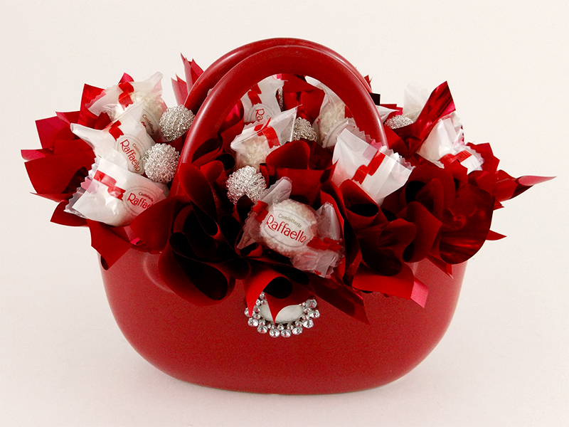 Fine Rafaelo wafers uniquely arranged in red purseĀ to celebrate any occasion.